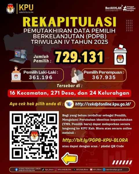 Rekapitulasi PDPB Triwulan IV Tahun 2024 di Kabupaten Blora dituangkan di Berita Acara dan SK KPU Kabupaten Blora Berikut ini :