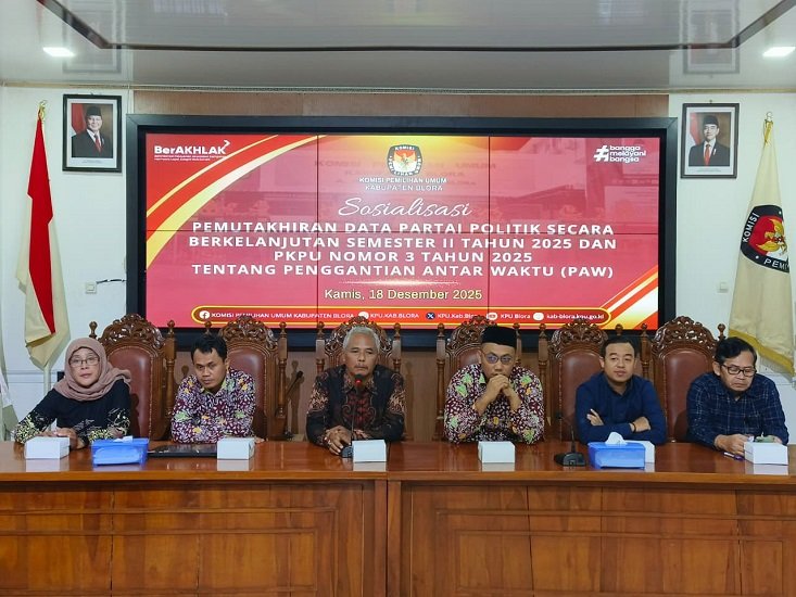 BLORA – Komisi Pemilihan Umum (KPU) Kabupaten Blora menyelenggarakan kegiatan "Sosialisasi Pemutakhiran Data Partai Politik Semester II Tahun 2025 dan PKPU Nomor 3 Tahun 2025 tentang Penggantian Antarwaktu (PAW)".