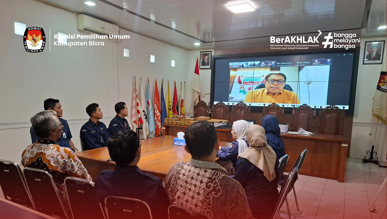 Blora – Komisi Pemilihan Umum (KPU) Kabupaten Blora mengikuti kegiatan Ngopi Asli (Ngobrol Pinter Arsip dan Logistik) yang diselenggarakan oleh KPU Provinsi Jawa Tengah dengan tema “Extra Time Pengelolaan Logistik Pemilu: Akselerasi Distribusi dan Pelaporan yang Tepat dan Akuntabel”, Selasa (3/3/3036).