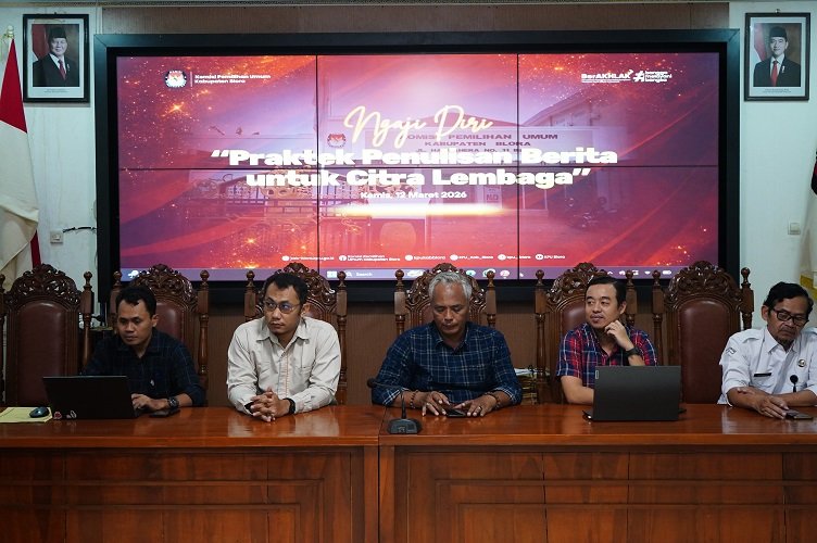 BLORA – Komisi Pemilihan Umum (KPU) Kabupaten Blora terus berbenah dalam memperkuat komunikasi publik. Sebagai langkah nyata meningkatkan kapasitas Sumber Daya Manusia (SDM) di bidang informasi dan publikasi, KPU Blora menggelar kegiatan Ngaji Diri dengan tema "Praktik Penulisan Berita untuk Citra Lembaga" di Aula KPU Kabupaten Blora, Kamis (12/03/2026).
