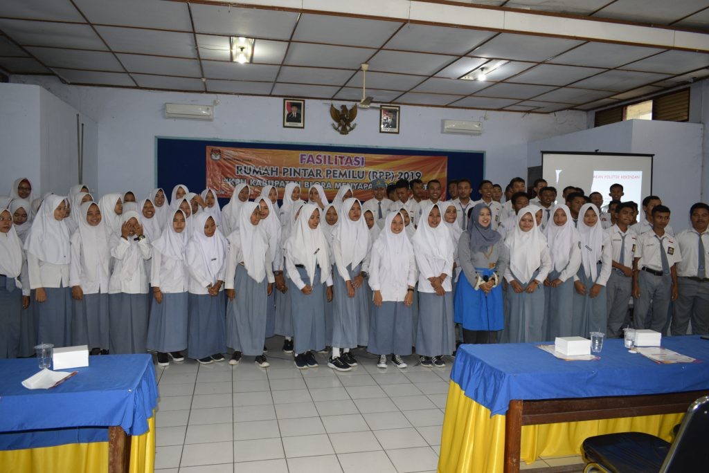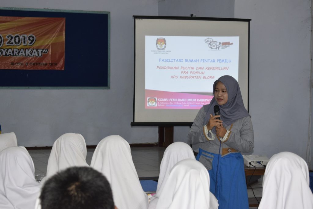 (08/10/2019)-Komisi Pemilihan Umum Kabupaten Blora menyapa masyarakat pra pemilih melalui Fasilitasi Rumah Pintar Pemilu “Sasono Pasinaon Pemilu” bertempat di Gedung PKPRI Blora dengan 96 Orang peserta dari Siswa/siswi 6 Sekolahan ( SMK N 1 Blora, SMA N Tunjungan, MAN Blora, SMK Ma’arif Blora, SMK Al ‘Alif Blora, MA Safinatun Najah).
