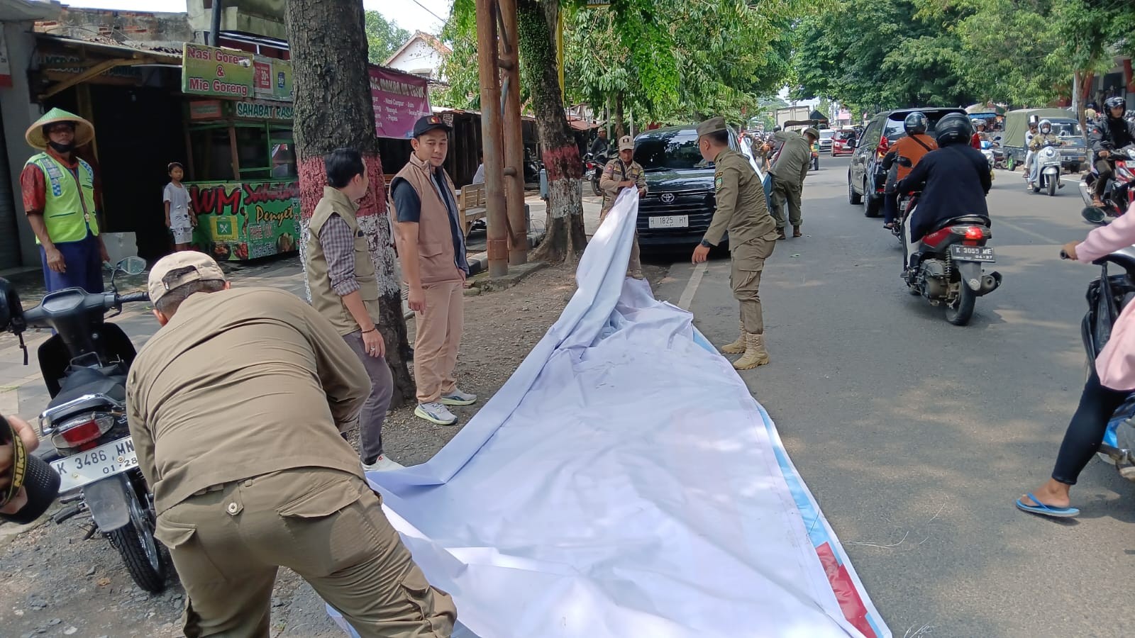 Blora - Memasuki masa tenang Pilkada serentak Tahun 2024 yang dimulai pada Minggu, 24 sampai 26 November 2024, KPU Blora membersihkan alat peraga kampanye atau APK yang masih berseliweran di jalan.