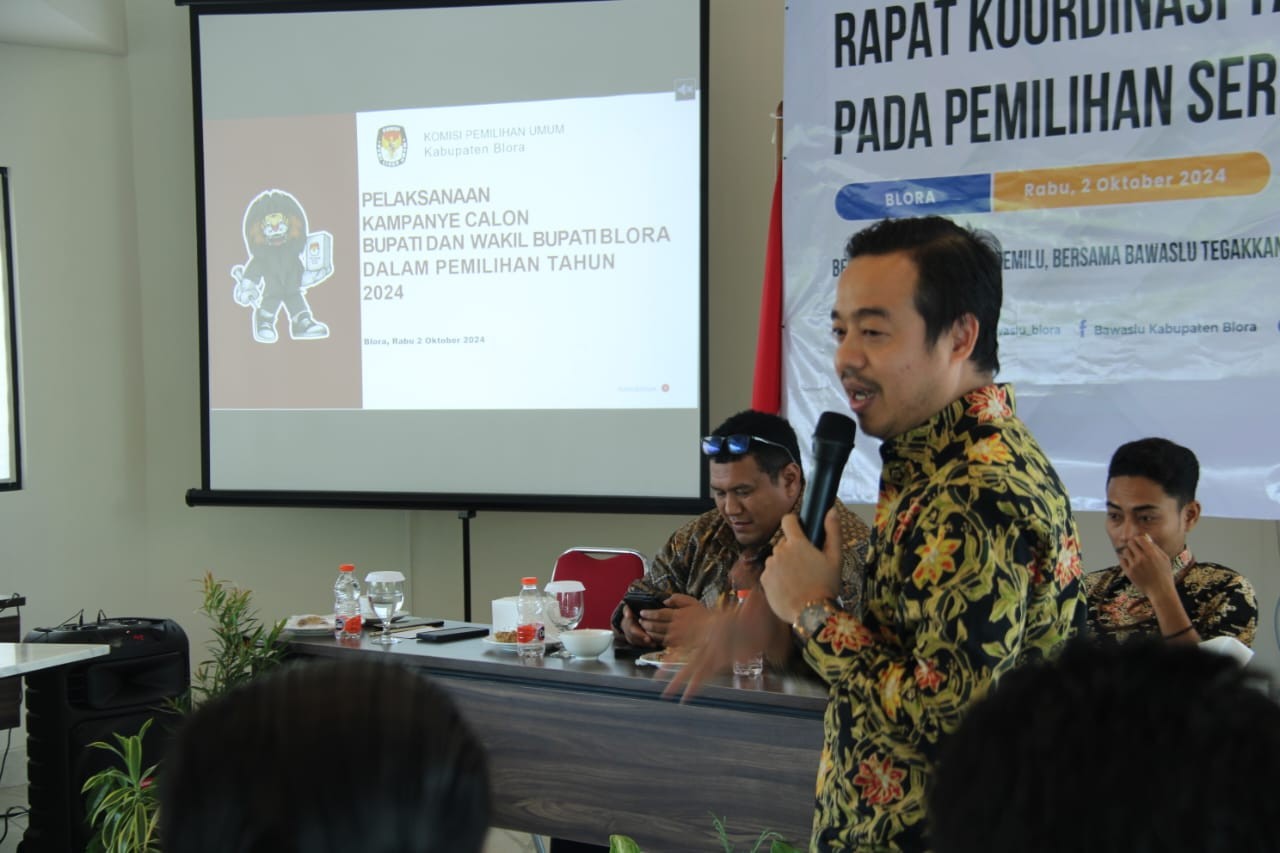 Blora - Komisi Pemilihan Umum (KPU) Kabupaten Blora, Jawa Tengah menjadi narasumber dalam Rapat Koordinasi Tahapan Kampanye pada Pemilihan tahun 2024 di Hotel Azana Garden Hill Blora, Rabu (2/10/2024).