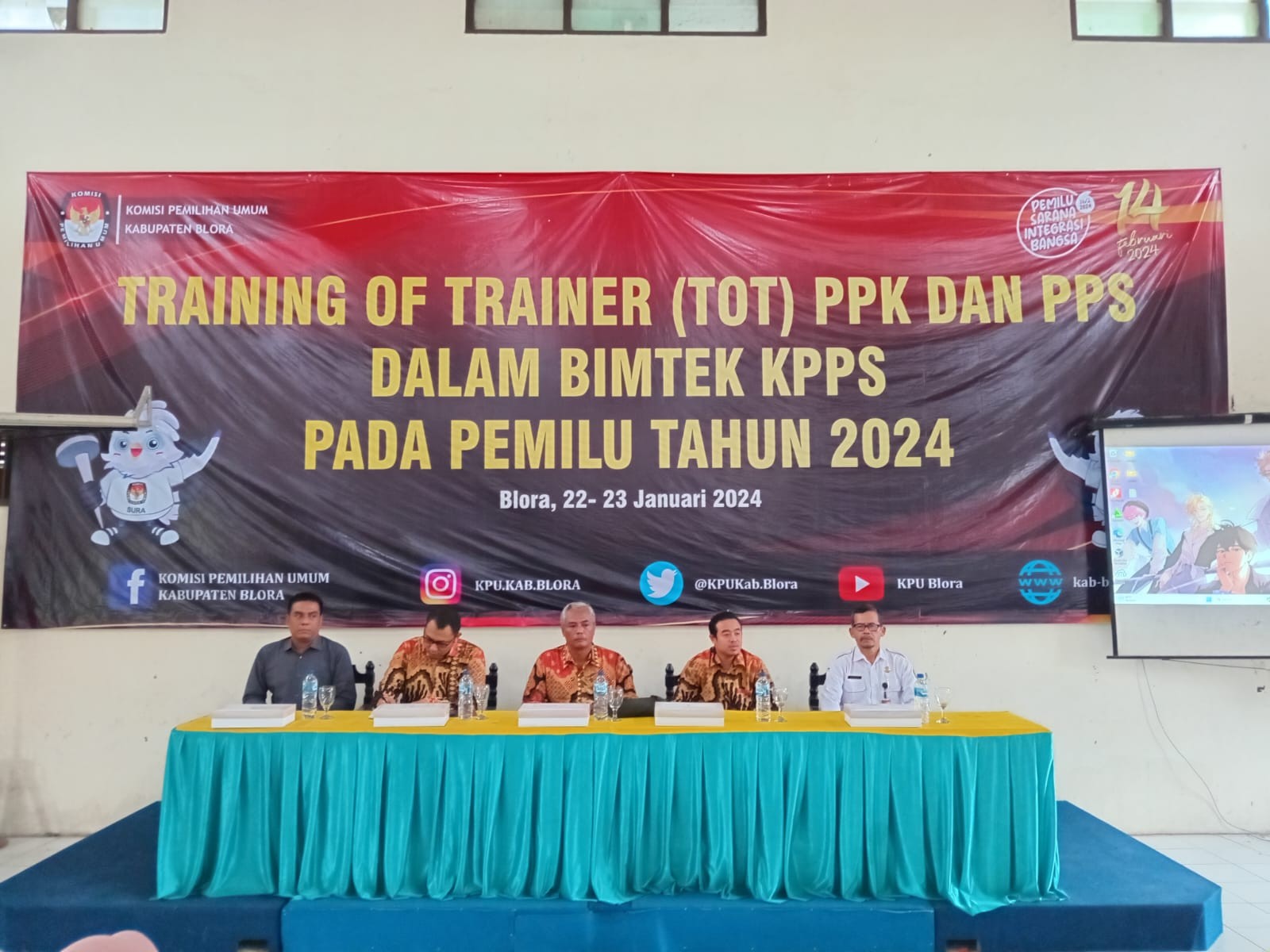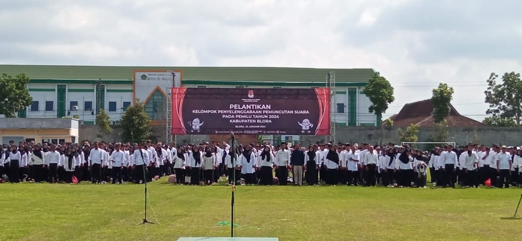 Blora - Komisi Pemilihan Umum (KPU) Kabupaten Blora melantik total 20.839 Kelompok Penyelenggara Pemungutan Suara (KPPS) se Kabupaten Blora. Upacara pelantikan ini dilaksanakan secara serentak pukul 09.00 WIB pada Kamis (25/1/2024) di masing-masing wilayah di Kabupaten Blora. Ketua KPU Kabupaten Blora, Widi Nurintan Ari Kurnianto mengatakan, KPPS sangat penting perannya sebagai Penyelenggara Pemilu, sebagaimana diatur dalam Undang-undang Nomor 7 Tahun 2017 Tentang Pemilihan Umum. “Salah satu tugas KPPS adalah melaksanakan pemungutan dan penghitungan suara di Tempat Pemungutan Suara (TPS),” ucapnya. Ketua Divisi Sosdiklih Parmas dan SDM KPU Kabupaten Blora, Ahmad Mustakim mengungkapkan, pelantikan ini ada yang dilaksanakan di masing-masing desa/kelurahan dan ada yang cluster di lapangan ataupun indoor. “Seluruhnya ada 78 titik lokasi pada pelantikan serentak ini. Pelantikan pada hari ini juga ditandai dengan penanaman bibit pohon secara serentak setelah pelantikan di masing-masing desa/kelurahan,” ucapnya. Disampaikannya, KPU menyadari dengan tercetak banyaknya logistik Pemilu berbahan baku kertas, memberikan dampak signifikan terhadap kelestarian alam. KPU memandang pentingnya penanaman bibit pohon sebagai bentuk kepedulian terhadap kelestarian lingkungan. “Total kebutuhan kertas dengan berbagai jenis untuk logistik Pemilu 2024 sekitar 65.998 ton atau setara dengan 65.998.000 kilogram kertas. Kebutuhan tersebut dapat diganti dengan menanam 5.709.898 bibit pohon. Maka diharapkan setiap bibit pohon akan mengganti 11,6 kilogram kertas,” jelasnya. “Berdasarkan hal tersebut, maka apabila dihitung jumlah bibit pohon 5.709.898 dikalikan 11,6 kg adalah sama dengan 66.234.816 kg atau 66.234 ton. Jumlah tersebut hampir setara atau sebanding dengan kertas yang digunakan dalam Pemilu 2024,” imbuhnya. Lanjut Mustakim, hal ini sebagai simbol rasa syukur kepada Allah Tuhan Yang Maha Kuasa, rasa terima kasih kepada bumi, dan ikhtiar reboisasi terhadap pohon yang berkontribusi untuk pemenuhan logistik berupa kertas dalam Pemilu 2024. “Pelantikan secara serentak ini mendapatkan penghargaan dari Museum Rekor Dunia Indonesia (MURI) untuk tiga kategori rekor, yaitu: 1. Pelantikan secara serentak anggota penyelenggara pemilu terbanyak; 2. Bimbingan Teknis secara serentak kepada anggota penyelenggara pemilu terbanyak; dan 3. Penanaman Bibit Pohon terbanyak secara serentak oleh anggota penyelenggara pemilu terbanyak,” terangnya. Mustakim menambahkan, paska pelantikan akan dilaksanakan Bimbingan teknis (bimtek) KPPS oleh PPS didampingi PPK masing-masing. “Kami berharap KPPS nantinya memahami tugas dan regulasi pemungutan dan penghitungan suara. Karena di hari H merupakan mahkotannya pemilu,” harapnya.