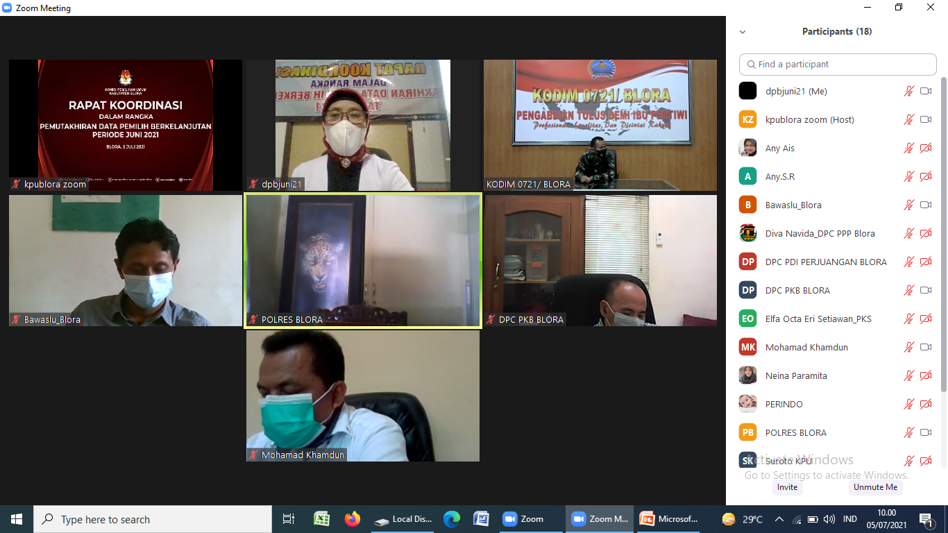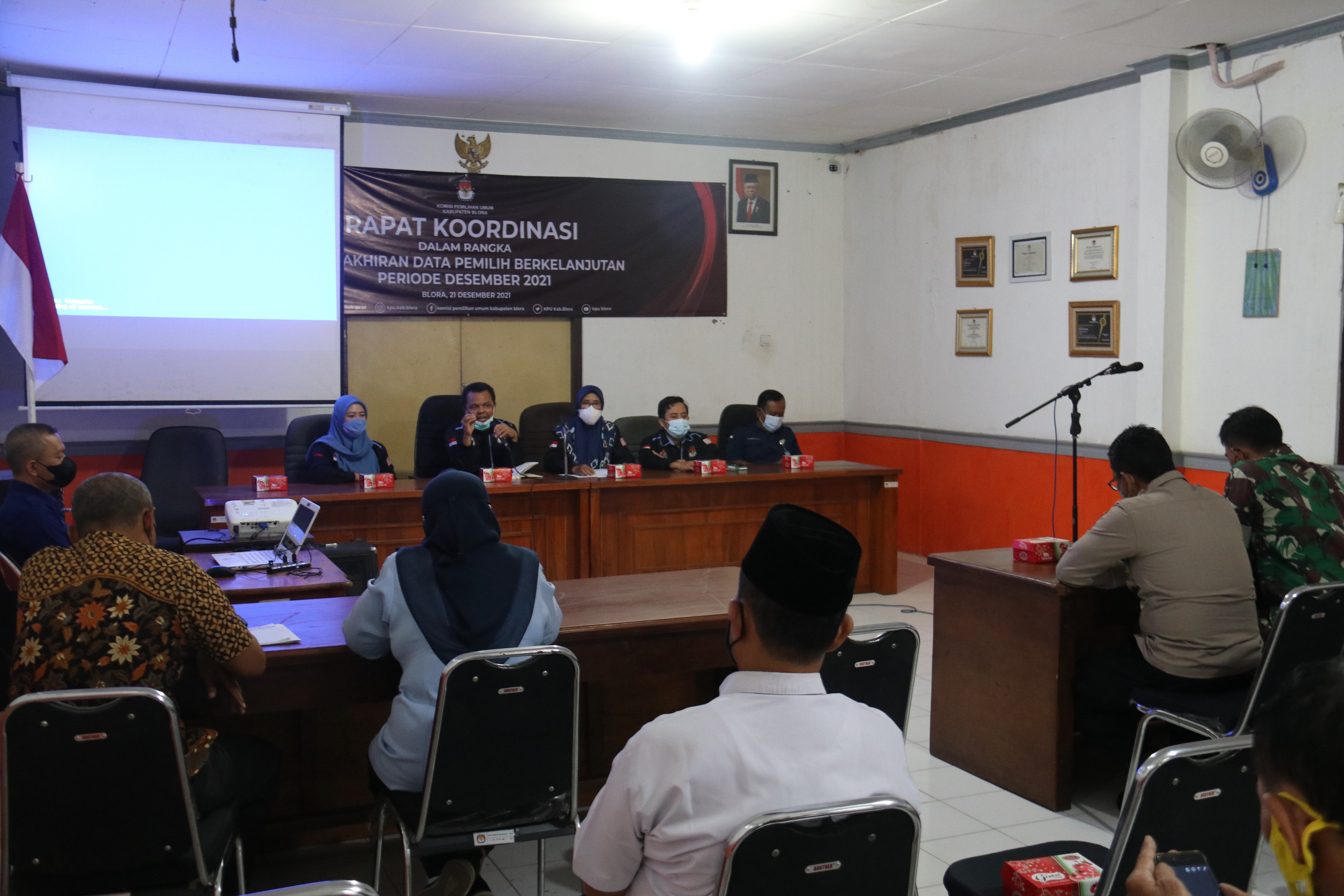 Bertempat di Ruang Pertemuan KPU Blora, Jl. Halmahera 11 Blora, pada Selasa, 30 November 2021 ditetapkan Daftar Pemilih Berkelanjutan (DPB) bulan November 2021. Rapat Pleno dihadiri komisioner, sekretaris, dan Kepala Sub Bagian di lingkungan KPU Blora. Pada bulan November 2021 ditetapkan DPB Kabupaten Blora sebanyak 697.616 pemilih, yang terdiri dari 344.784 laki-laki dan 352.832 perempuan. Penyusunan Daftar Pemilih Berkelanjutan adalah upaya KPU untuk menyajikan data pemilih dengan menyesuaikan dinamika kependudukan. Upaya ini diharapkan mampu menyajikan daftar pemilih yang digunakan pada agenda Pemilu berikutnya. Data pemilih yang akurat menjadi salah satu syarat mutlak penyelenggaraan pemilu yang berintegritas. Daftar Pemilih Bekelanjutan merupakan hasil kerjasama antara KPU dan dinas tekait seperti Dinas Kependudukan dan Catatan Sipil, TNI/ POLRI, serta Kementerian Agama. Informasi kependudukan seperti penduduk yang berusia 17 tahun atau lebih, penduduk yang sudah atau pernah kawin, menjadi anggota TNI/POLRI, purna tugas sebagai anggota TNI/POLRI, meninggal dunia, ataupun pindah ke kabupaten lain merupakan item- item yang senantiasa mempengaruhi bertambah dan berkurangnya daftar pemilih “Untuk DPB bulan November 2021 terjadi pengurangan jumlah pemilih dibandingkan dengan bulan sebelumnya, yakni 700.662 pemilih. Hal ini disebabkan adanya masukan dari Dukcapil tekait adanya masukan pemilih yang meninggal dan pindah dari Kabupaten Blora” tutur Heni Rina Minarti, Anggota KPU Blora Divisi Perencanaan Data dan Informasi.