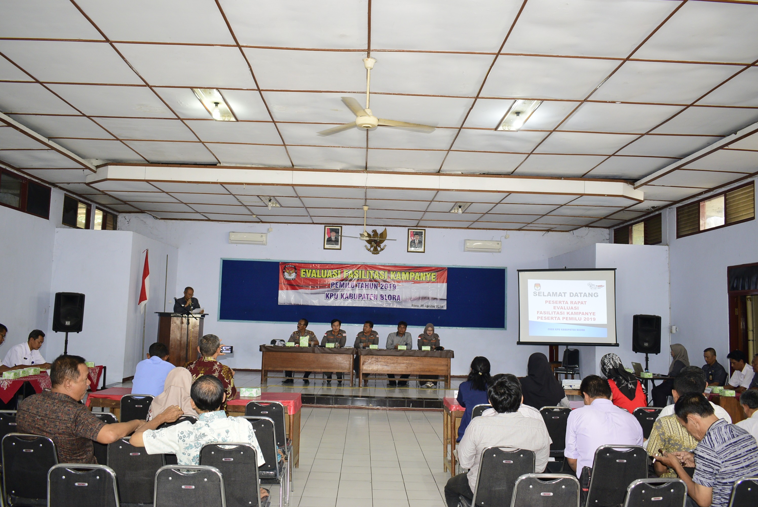 Penyelenggara Pemilu (KPU dan Bawaslu Kabupaten Blora) bersama peserta Pemilu (Parpol dan Tim kampanye Paslon tingkat Kabupaten Blora) bersepakat memperbaiki pelaksanaan fasilitasi kampanye untuk Pemilu selanjutnya. Kesepakatan ini terjadi dalam evaluasi fasilitasi kampanye Pemilu 2019, Selasa (20/8) yang diselenggarakan KPU Blora, bertempat di Gedung PKPRI, Jl. Halmahera Blora. Hadir dalam acara tersebut, KPU Blora, Bawaslu, Blora, Polres Blora, Tapem Setda Blora, Kesabangpol, Dinas Perijinan, Satpol PP dan pimpinan parpol se-Kabupaten Blora.