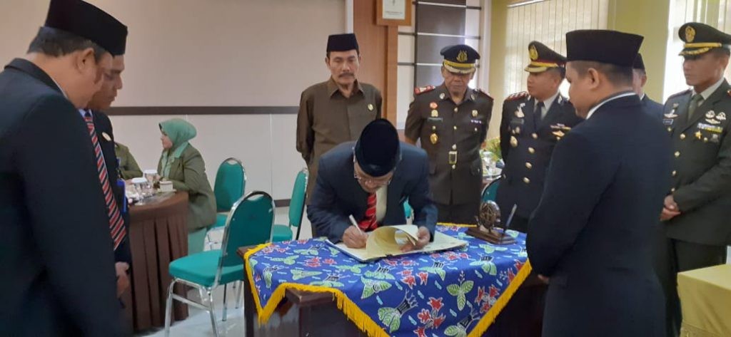 Penandatanganan nota kesepakatan dan perjanjian kerjasama pengamanan Pemilu 2019 yang dilakukan oleh Polres Blora dengan Komisi Pemilihan Umum (KPU) Blora dilaksanakan Rabu (09/01/19). Kerjasama dilakukan mengingat pelaksanaan pesta demokrasi yang sudah di depan mata pada bulan April mendatang. Selaku aparat keamanan, Kepolisian wajib menjamin keamanan masyarakat saat menggunakan hak pilihnya. Kapolres Blora AKBP Antonius Anang, S.I.K, M.H, usai acara mengatakan, kegiatan ini sebagai langkah tindak lanjut yang sudah dilakukan di tingkat pusat dan diteruskan ke tingkat daerah. Pada intinya antara KPU dan Polres Blora memiliki komitmen bersama untuk melaksanakan tugas penyelenggara dan pengamanan Pemilu 2019 agar berjalan sesuai rencana. “Penandatanganan ini menjadi kunci pokok dalam menjaga pelaksanaan pemilu 2019 agar dapat berjalan lancar, damai dan sukses,” ujarnya. Kapolres menjelaskan akan mengerahkan 2/3 kekuatan ketika disinggung mengenai persiapan jumlah kekuatan personil Polres Blora yang akan dikerahkan pada tahapan kampanye dan tahap pungut. “Untuk tahapan kampanye kali ini sudah kita kerahkan 221 personil, sedangkan nanti pada saat tahap pungut kita akan siapkan hampir 500 personil. Namun jumlah ini masih dinamis karena dimungkinkan adanya perubahan jumlah TPS dan perkembangan situasi kamtibmas.” Ujar AKBP Anang. Lebih lanjut Kapolres menambahkan intinya Polri bekerjasama dengan KPU terutama dalam hal pengaman baik logistic maupun pengamanan pada pelaksanaan kampanye, pencoblosan, masa tenang, tahap pungut sampai penetapan. “Yang penting pelaksanaan setiap kegiatan dalam tahapan pemilu 2019 ini, kita amankan seupaya tidak terjadi permasalahan yang dapat mengganggu dan menghambat pesta demokrasi ini,” tandasnya. Sementara itu ketua KPU Kab. Blora mengatakan acara pendatanganan MOU ini sebagai penegasan antara KPU dan Polres Blora dalam tahapan Pemilu 2019. Meskipun kerjasama ini sebenarnya sudah kita lakukan semenjak tahapan awal Pemilu serentak tahun 2019 dimulai. “Sebelumnya sudah terjalin kerjasama dan saling kordinasi dengan Polres Blora dalam hal pengamanan. Namun dengan dilaksanakannya pendatanagan nota kesepahaman dan kerjasama ini sebagai penegasan kesiapan penyelenggaraan dan pengamanan pemilu 2019,” pungkasnya.