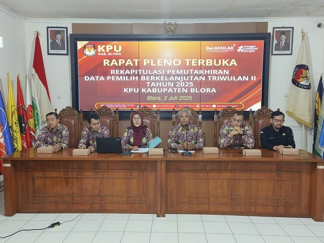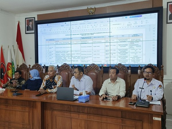Blora - Komisi Pemilihan Umum (KPU) Kabupaten Blora menggelar rapat pleno rutin di kantor KPU Blora pada Senin (21/7/2025). Rapat yang dipimpin langsung oleh Ketua KPU Blora ini dihadiri oleh seluruh komisioner dan jajaran sekretariat. Rapat pleno kali ini adalah membahas evaluasi kinerja serta persiapan dan penyampaian materi sebagai narasumber dalam program Ngopi Asli (Ngobrol Pemilu Asyik dan Literasi) yang digagas oleh KPU Provinsi Jawa Tengah. Program ini bertujuan untuk meningkatkan pemahaman dan partisipasi masyarakat, khususnya pemilih muda, terhadap proses demokrasi dan kepemiluan. "Kami sangat antusias untuk menjadi bagian dari program Ngopi Asli KPU Jawa Tengah," ujar Ketua KPU Blora, Widi Nurintan Ary Kurnianto. "Ini adalah kesempatan bagi kami untuk lebih dekat dengan masyarakat Blora, khususnya generasi muda, dan menyampaikan informasi kepemiluan secara santai dan mudah dipahami," tambahnya. Dalam rapat tersebut, para komisioner dan staf KPU Blora berdiskusi mendalam mengenai materi yang akan disampaikan, mulai dari perencanaan pada non tahapan pemilu, pentingnya partisipasi pemilih, hingga peran KPU dalam menjamin integritas pemilu. Rencananya, KPU Blora akan mengirimkan perwakilan sebagai narasumber yakni Divisi Perencanaan Data dan Informasi, Heni Rina Minarti dalam sesi Ngopi Asli yang akan dilaksankaan besok Selasa (22/7/2025) Diharapkan, melalui partisipasi aktif ini, kesadaran dan minat masyarakat terhadap pemilu dapat terus meningkat, sehingga tercapai pemilu yang berintegritas dan demokratis.