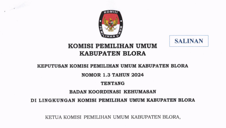 SK tentang Bakohumas KPU Kabupaten Blora Thun 2024 Selasa, 02 Januari 2024 16:00 57 SK tentang Bakohumas KPU Kabupaten Blora Thun 2024. UNDUH DISINI Baca Selengkapnya